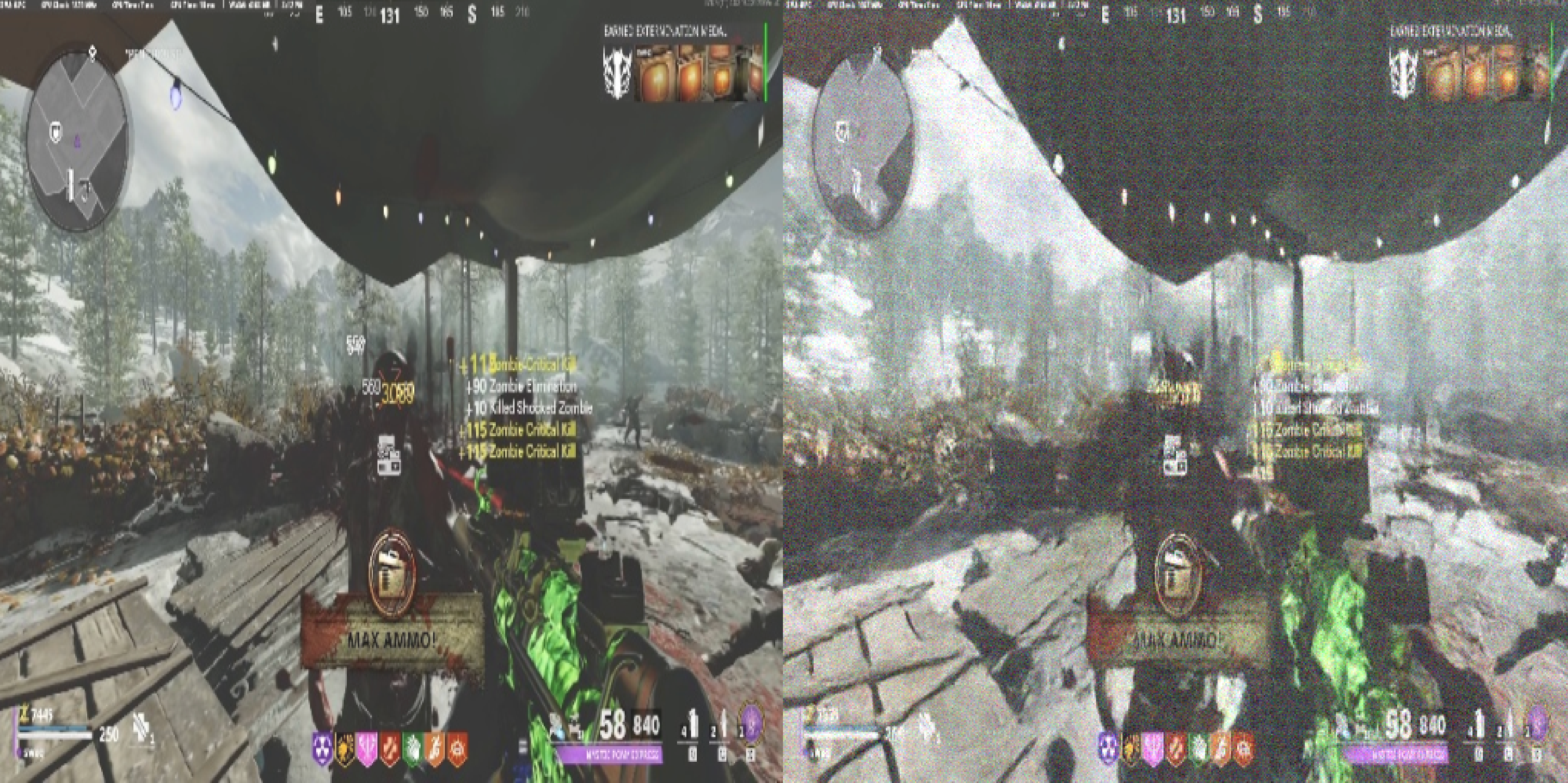 Even though the generation ability of the model was incredible, it often struggled with preserving actual HUD elements, often hallucinating new numbers or details. In this sample you can see how it replaces a few mushrooms with a patch of many small rocks: