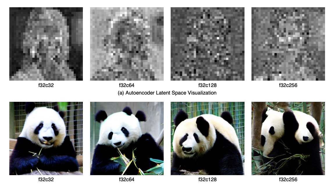 We have talked about autoencoders many times in the past. In summary, a latent space being diffusable is generally equivalent to it being image-like. Understanding this serves as important context for further sections of this blog post. What we mean by having image-like latents, is that the spectral and spatial composition of a latent should correspond with the spectral and spatial composition of the original image. The top left of the latent should be representing the top left of the image, the high frequency features of the latent should represent the high frequency features of the image, and so-on. Autencoders that skirt these principles can give high quality reconstructions but suffer when it comes to generation. High channel counts are shown to do this in the DCAE 1.5 paper:
