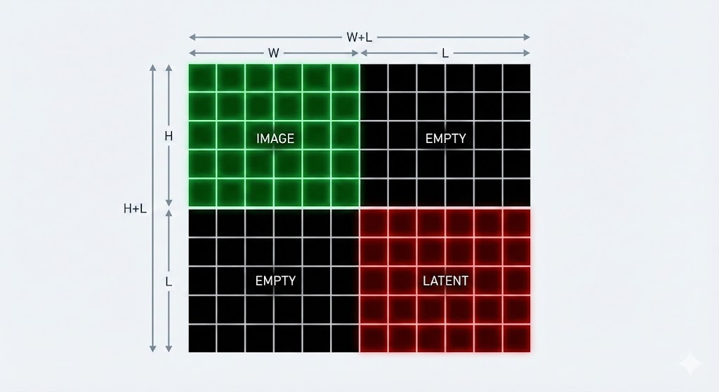 We previously had a blog on diffusion decoders. In our old setup, the encoder was frozen and a decoder (a DiT) was trained given a clean latent and a noisy image. In terms of positional encoding, it saw the input as follows: